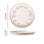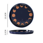 Each plate is hand-painted with playful motifs inspired by moon phases. flowers and coastal light. The organic. slightly irregular edges give them a natural charm. like ceramic pieces found in artisan markets by the sea.
