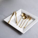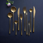 Introducing Algendar Cutlery by Salaterra: exquisite golden cutlery sets crafted from high-quality stainless steel.