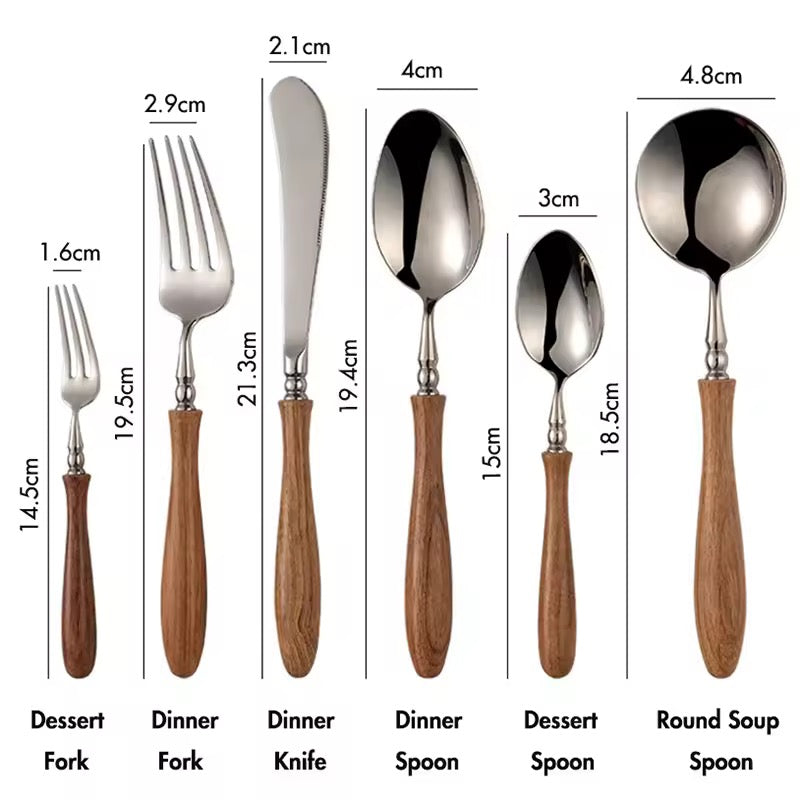 4 People set (24 pcs): 4x Knife + 4x Fork + 4x Spoon + 4x Round Spoons+ 4x Teaspoons + 4x Dessert forks