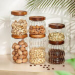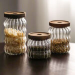 Inspired by Mediterranean minimalism. the Lloseta Jar set embodies simplicity and elegance. The wavy glass design creates an eye-catching effect. showcasing its contents with style.