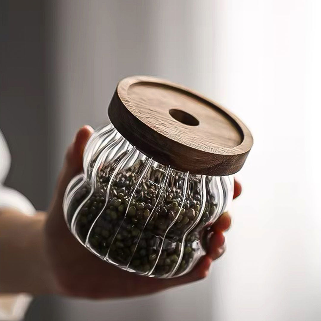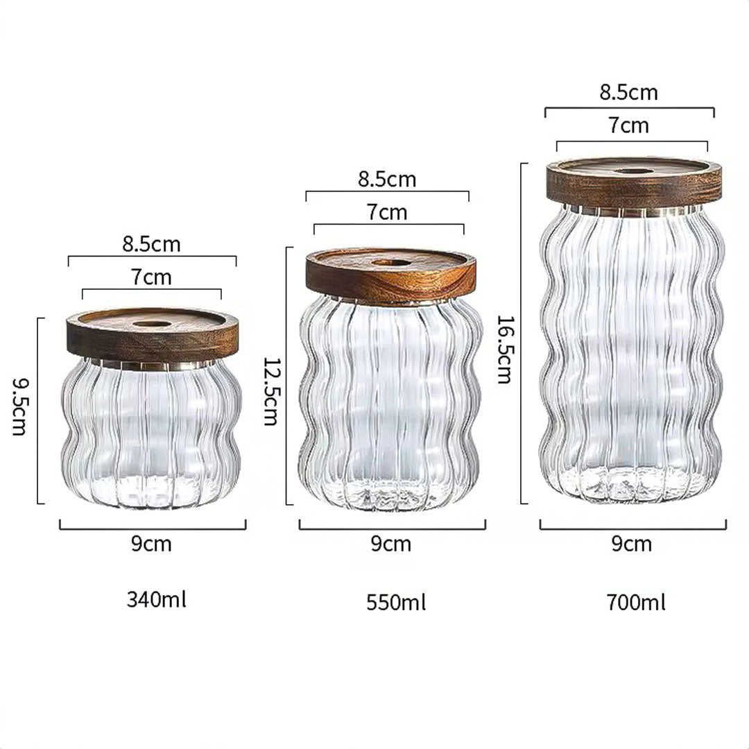 Inspired by Mediterranean minimalism. the Lloseta Jar set embodies simplicity and elegance. The wavy glass design creates an eye-catching effect. showcasing its contents with style.