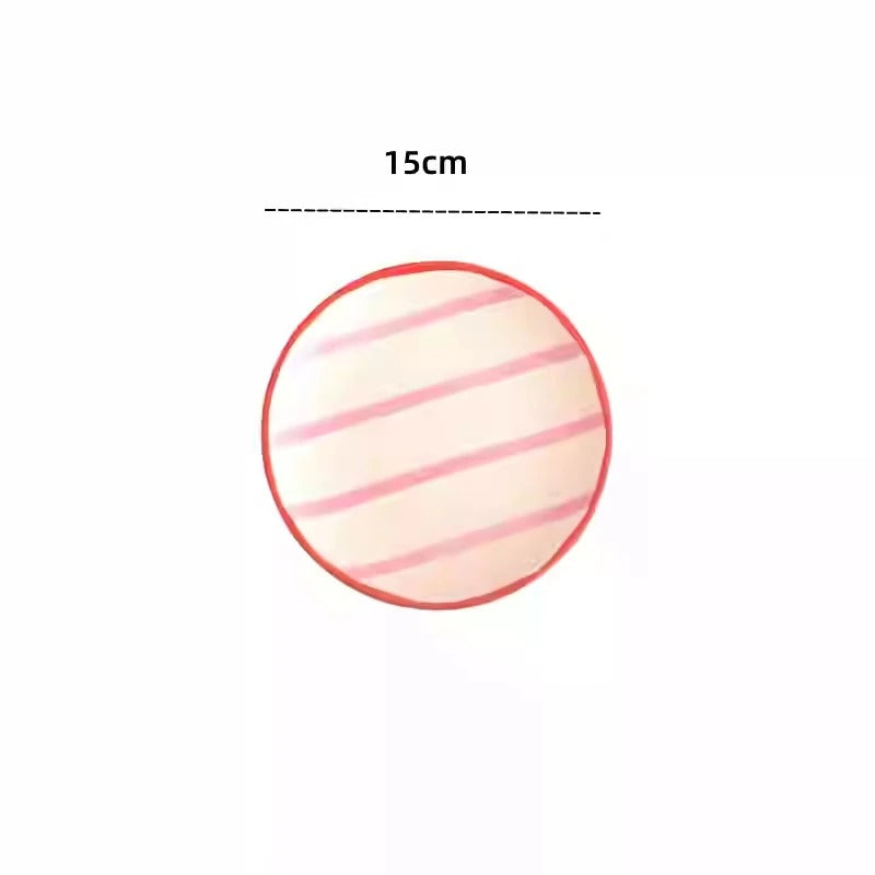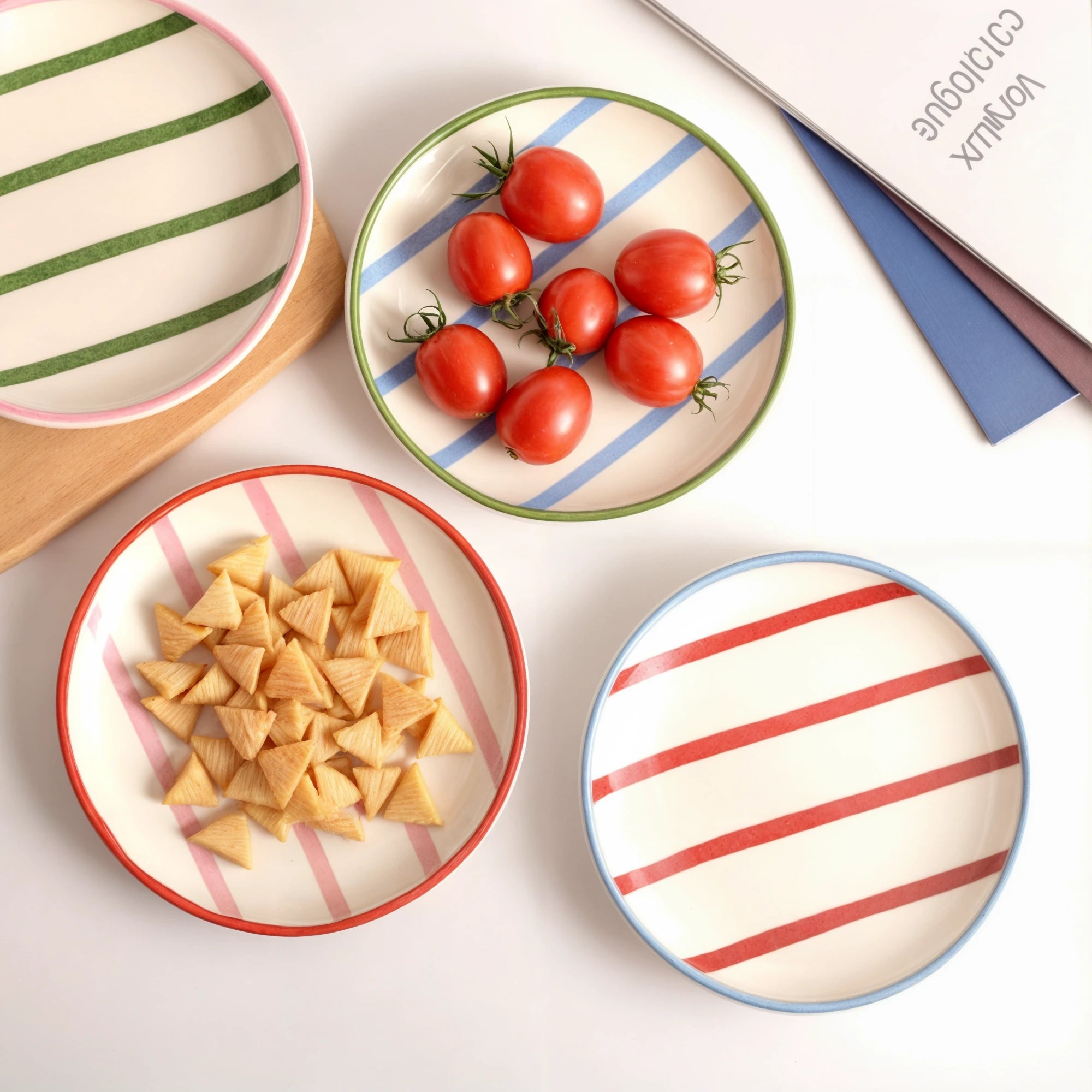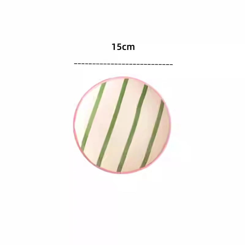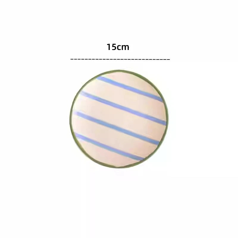 Hand-painted with casual stripes and finished with a gently irregular edge. each plate feels like summer on the coast — relaxed. joyful. and full of charm.