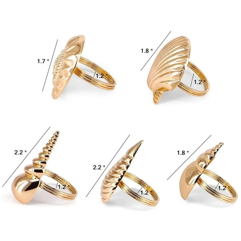 Each ring is inspired by a different seashell. capturing the curves. ridges. and textures of the ocean. Their sculptural forms and golden finish evoke summer evenings. barefoot dinners. and effortless elegance.