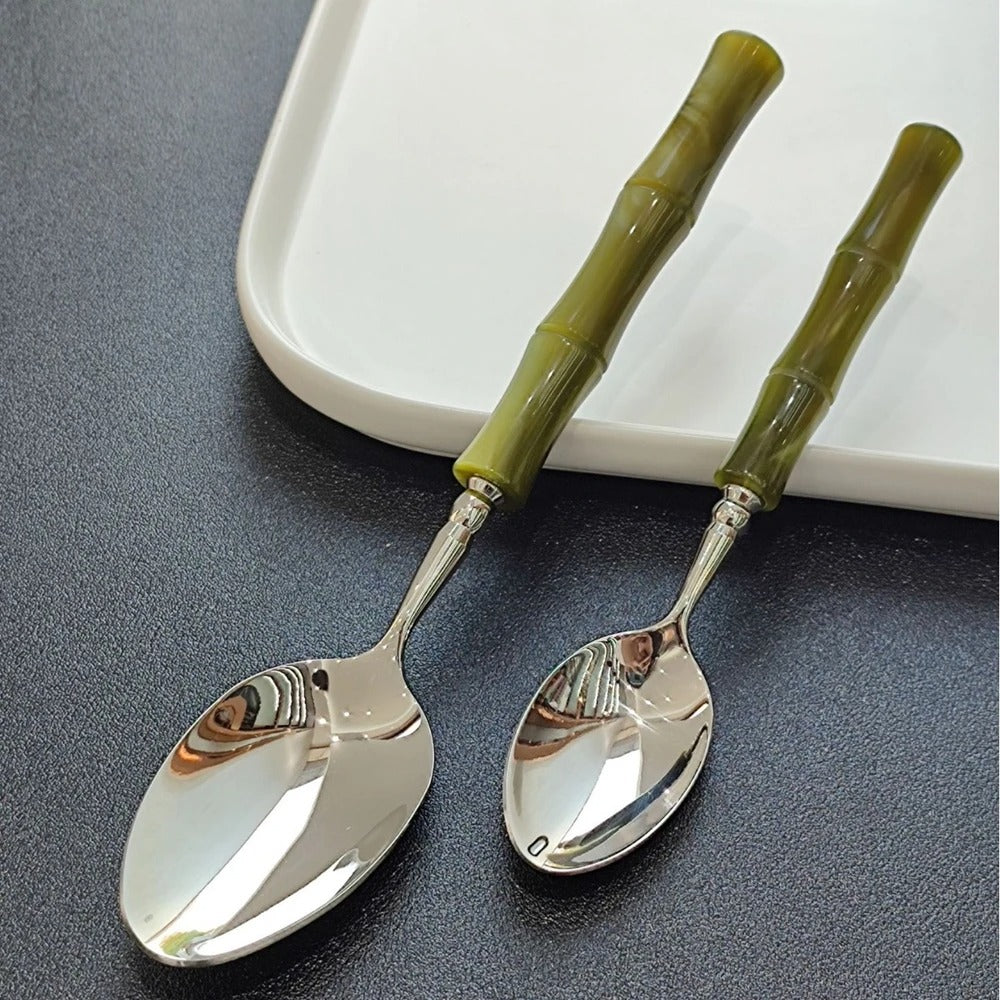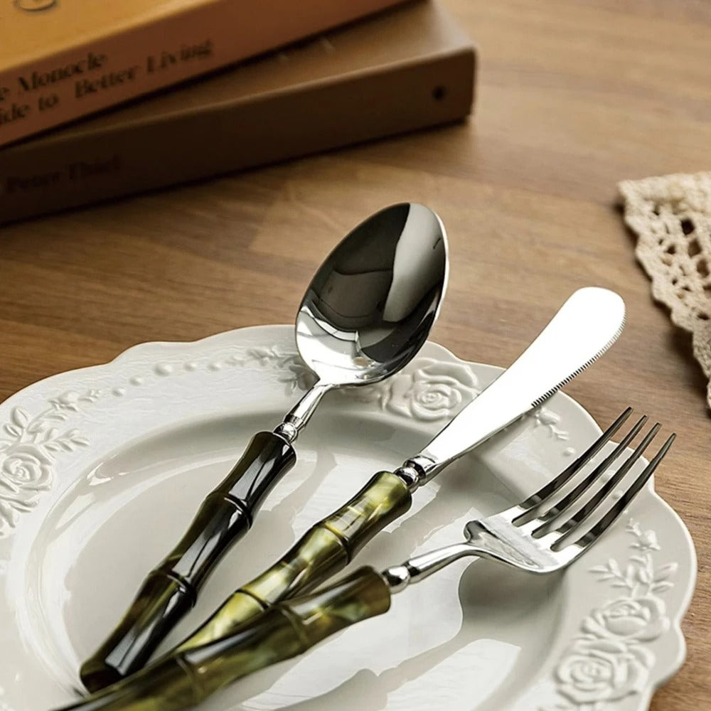 Crafted with durable materials and a balanced weight. each piece is designed for daily comfort and visual harmony. The resin handles have a soft shine that catches the light beautifully.
